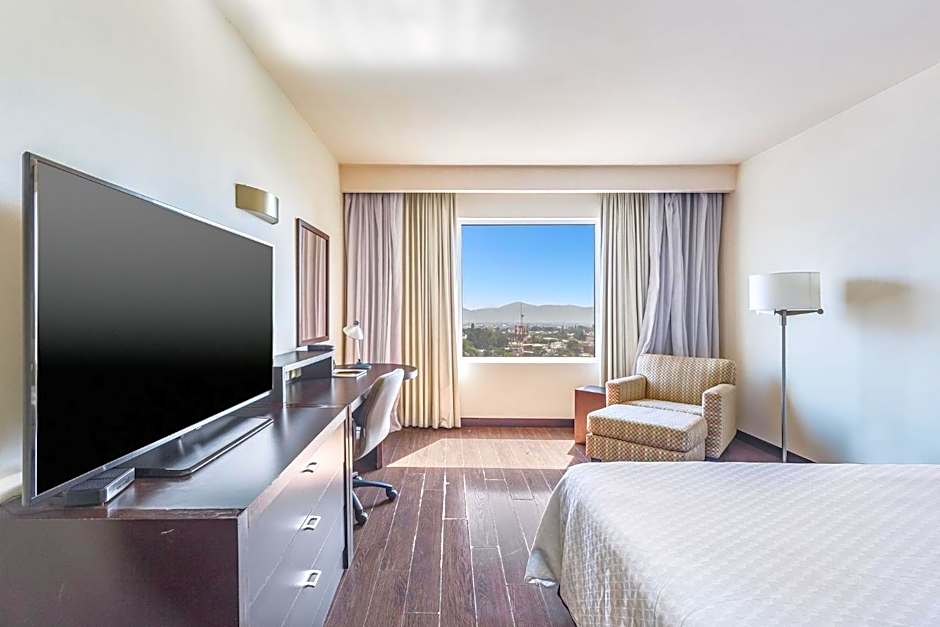 This spacious room offers a king-size bed, a 55-inch TV, a telephone and a desk. The private bathroom includes a bathtub and shower.